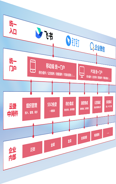 对协作平台提供支持服务,,,支持企业应用与协作平台对接,,包含组织同步、、消息集成、、、待办集成等。。。支持目前主流的协作平台:钉钉、、企微和飞书。。。。